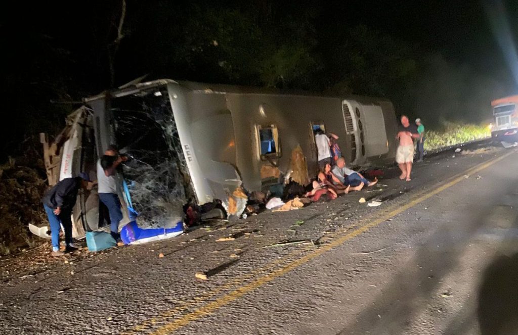 Um grave acidente envolvendo um ônibus de turismo deixou 15 mortos e diversos feridos na noite dessa sexta-feira (17), no quilômetro 126 da BR-423, nas proximidades da Serra dos Ventos, em Saloá, no Agreste de Pernambuco. Segundo a Polícia Rodoviária Federal (PRF), o motorista perdeu o controle do veículo, invadiu a contramão, colidiu em rochas às margens da pista, retornou ao sentido correto e tombou após atingir um barranco de areia. O ônibus, da empresa MF Tour, transportava comerciantes que haviam viajado de Brumado (BA) a Santa Cruz do Capibaribe (PE) para realizar compras no Polo de Confecções do Agreste.